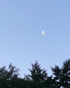 雨上がりだからかな? 鳥たちの朝も早く4時頃から元気な歌声🕊 西の空には沈むお月様。 川のせせらぎ聞きながら、最高な朝ヨガ🌈