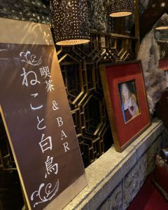 会場のねこと白鳥さん。 ひろーいライブバー。キラキラ装飾にワクワク高まります!お酒もずらーっと並び、次は電車で来よう🍸