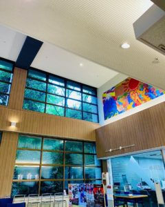 文化会館のロビーはグリーンに包まれ森にいるような感覚。